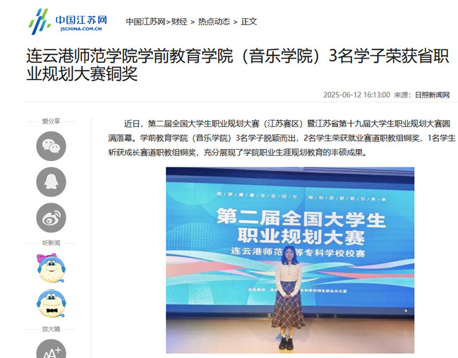 【中国江苏网】连云港师范学院学前教育学院(音乐学院)3名学子荣获省职业规划大赛铜奖