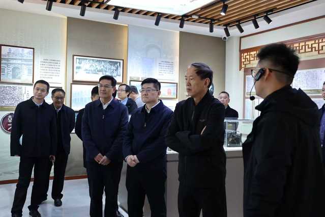 在校史馆,徐辉一行观看“新学始兴 基石初奠”“赓薪续火 踵事增华”“三源竞发 四水奔腾”“百年师范 肇启新程”等篇章展示,了解学校百十余年办学兴教历史、红色文化传承及近年来取得的高质量发展成果,对学校进一步提升育人水平和办学实力给予了指导。