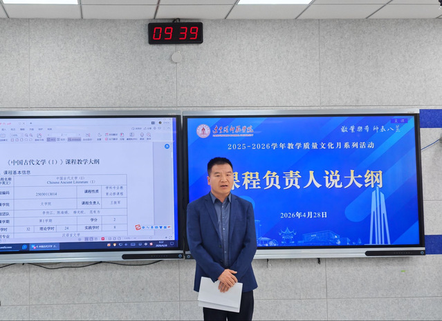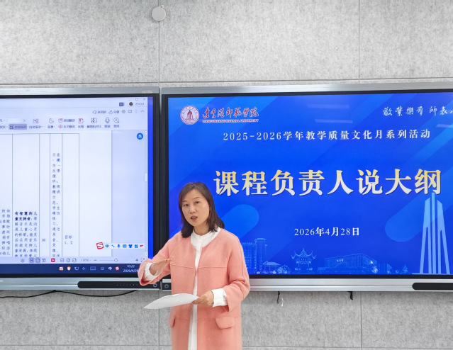 4月28日,我校举办教学质量文化月“课程负责人说大纲”活动,落实“学生中心、产出导向、持续改进”理念,强化课程教学大纲在人才培养中的纲领性作用。校长姚荣斌、副校长丁红星出席活动,各学院、部门教师代表参加活动。