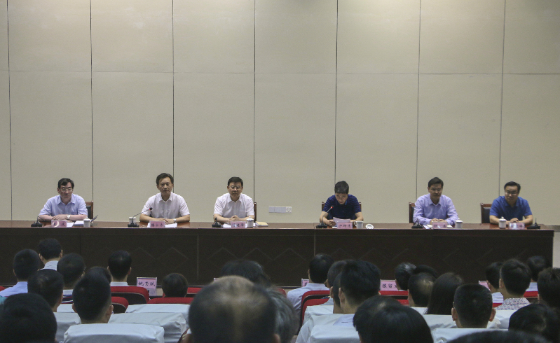 7月6日下午,我校在玖兴楼B108会议室召开全体干部大会,宣布省委关于调整我校领导班子的决定。市委常委、组织部长胡建军,省委组织部干部五处副处长沙晰清,市委组织部常务副部长刘利峰出席了会议,我校全体校领导、中层干部参加了会议。会议由滕士涛同志主持。