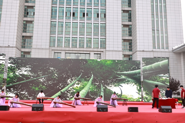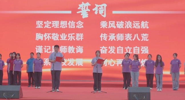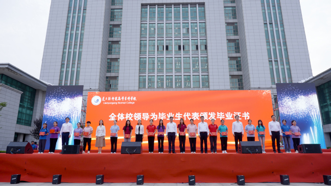 毕业生代表海洋港口学院孙逸同学、在校生代表学前教育学院(音乐学院)宋知倩同学分别作了热情洋溢的发言,表达对老师的感谢、对未来的期许和对学校发展的美好祝愿。