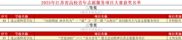 近日,我校在2025年江苏省高校青年志愿服务项目大赛暨高校青年志愿服务研讨活动中荣获二等奖1项、三等奖1项。