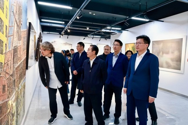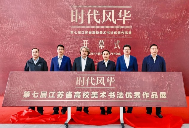 近日,“时代风华——第七届江苏省高校美术书法优秀作品展”开幕式在我校彦涵美术馆隆重举行。江苏省教育厅二级巡视员、省学校美育教学指导委员会主任、省学校美育协会会长李金泉,连云港市人民政府副市长张家炯,南京艺术学院副校长、省学校美育教学指导委员会副主任苗雨,连云港师范学院校长姚荣斌,连云港市委教育工委书记、市教育局局长王修杰,江苏省教育厅体卫艺处二级调研员王红蕾,江苏财会职业学院党委委员、副院长张绍光,南京艺术学院重大主题创作研究院常务副院长金捷,南京艺术学院艺术创作与实践处副处长李荣国,以及市教育局、在连高校和连云港市美术家协会的领导与师生代表齐聚现场,共赴这场艺术盛宴。