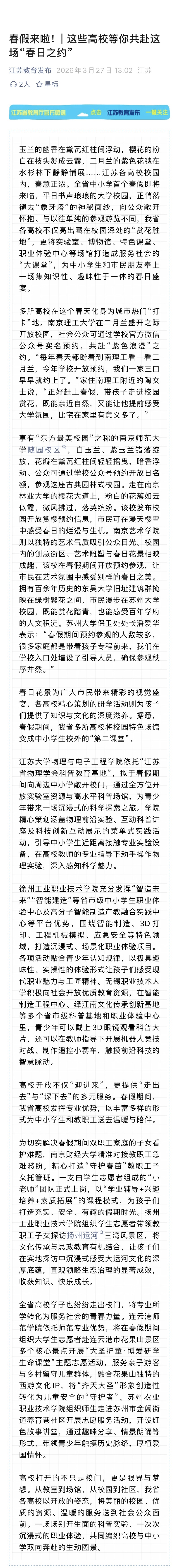 【江苏教育发布】春假来啦!| 这些高校等你共赴这场“春日之约”