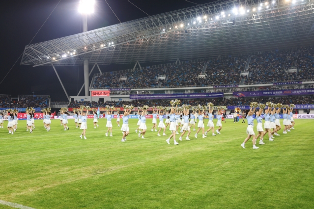 4月11日,2026江苏省城市足球联赛(连云港VS盐城)比赛在连云港市体育中心火热开赛。连云港师范学院120余名学生以灵动的舞姿、雄浑的鼓声、热情的互动,将朝气蓬勃的青年风采与山海港城的文化底蕴融合,以精彩纷呈的开场表演点燃赛场气氛,成为绿茵场上一道亮丽的风景线。