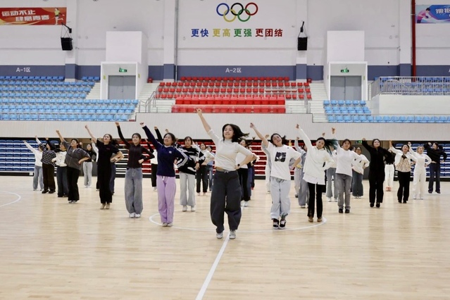 为了在表演中展现昂扬风貌,我校学子利用课余时间打磨动作细节,锤炼团队默契,历经17天的训练,用最燃的姿态,为“苏超”助威。